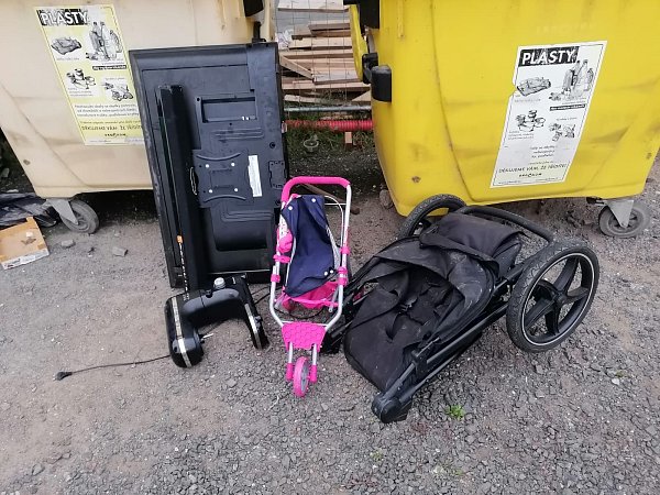 A ta fotka je od kontejenru na plasty, kam velmi inteligentní občan dovnitř odložil televizi a kočárky.
